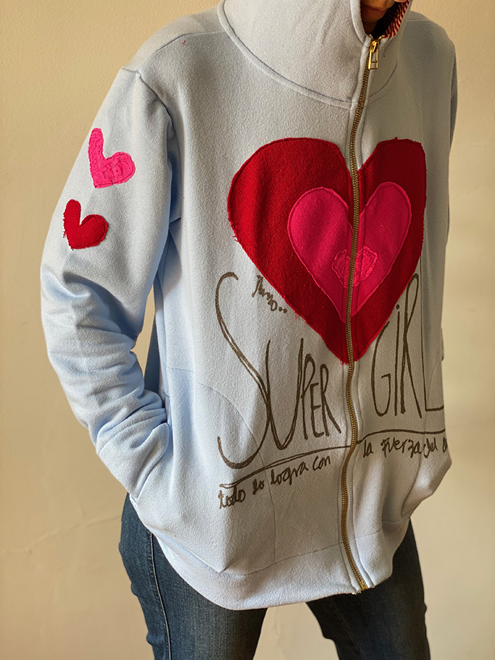 Tela algodón 100%, apliques en telas variadas, algunas reutilizadas.